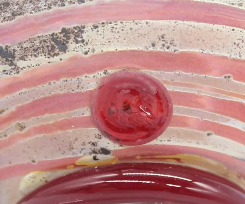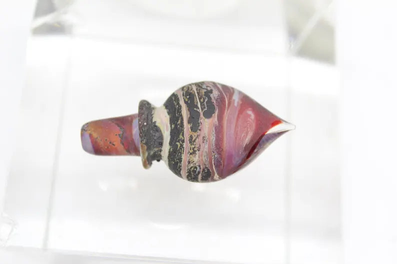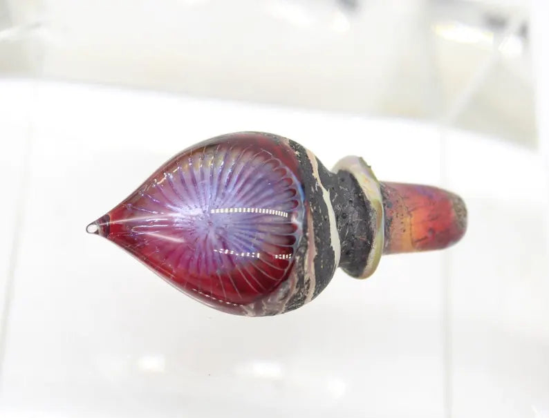 A fabulous art glass perfume bottle by Richard Clements. It is a stunning example of Richard early piece. The intricate design, colour combination , matte finishing body. Such a beautiful piece, not common to see Richards piece in this style. A must-have for serious collectors and admirers of glass art, this piece is a true treasure that will enhance any collection or vanity.