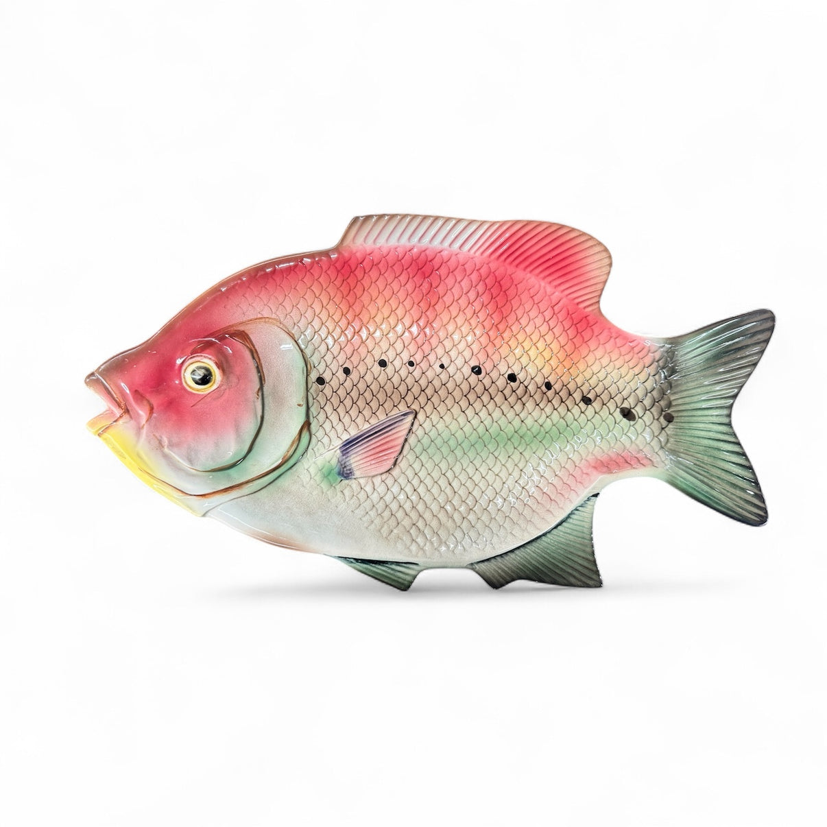 very beautiful hand colored fish plate,made in Japan with original label, lovely kitchen decor piece also still functional!