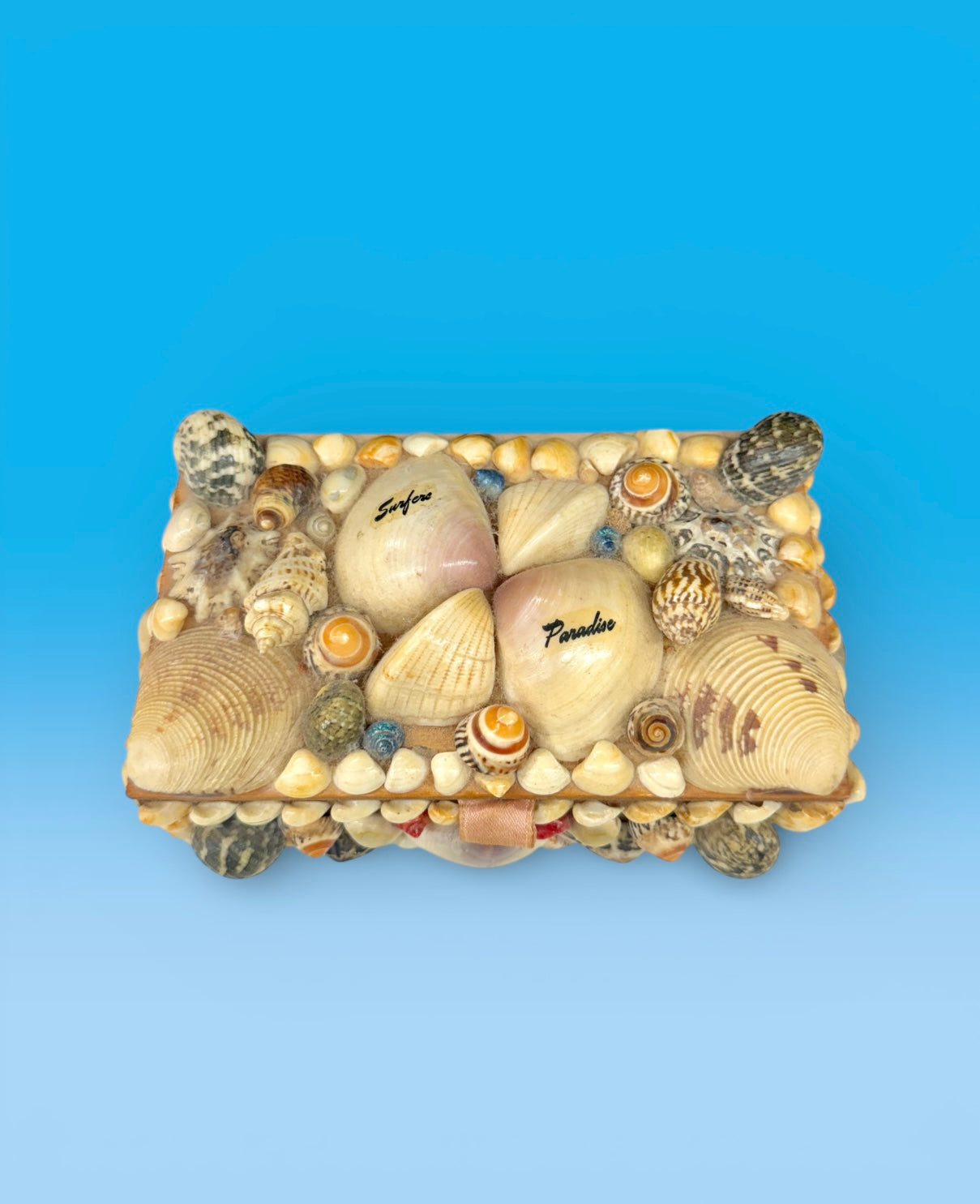 This is a beautiful vintage trinket box made by sea shell