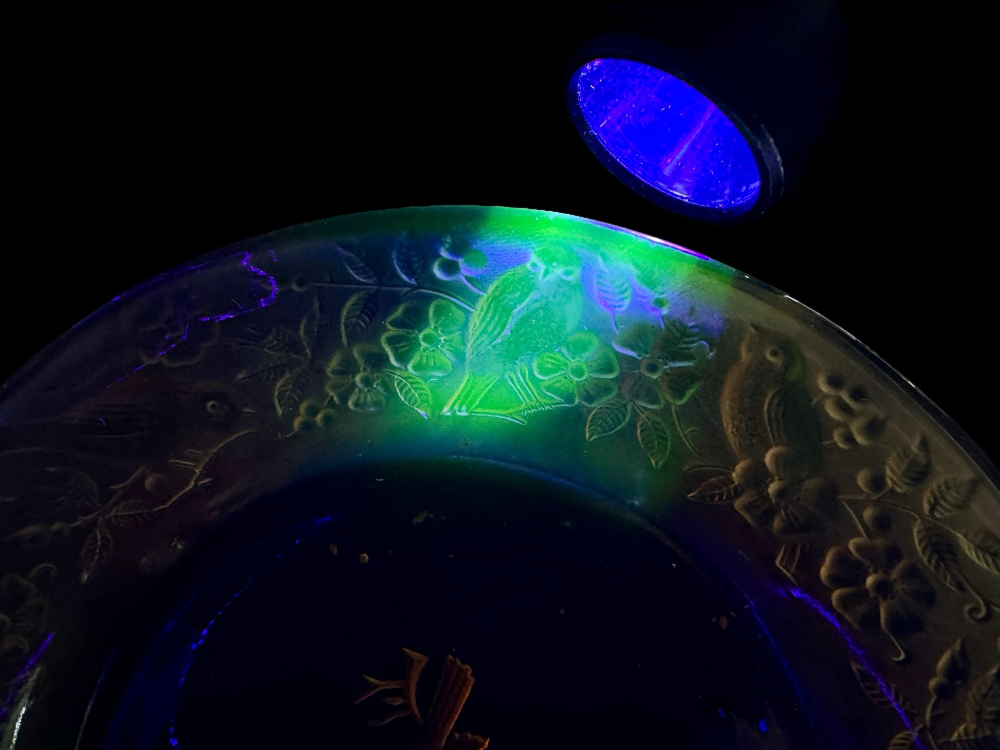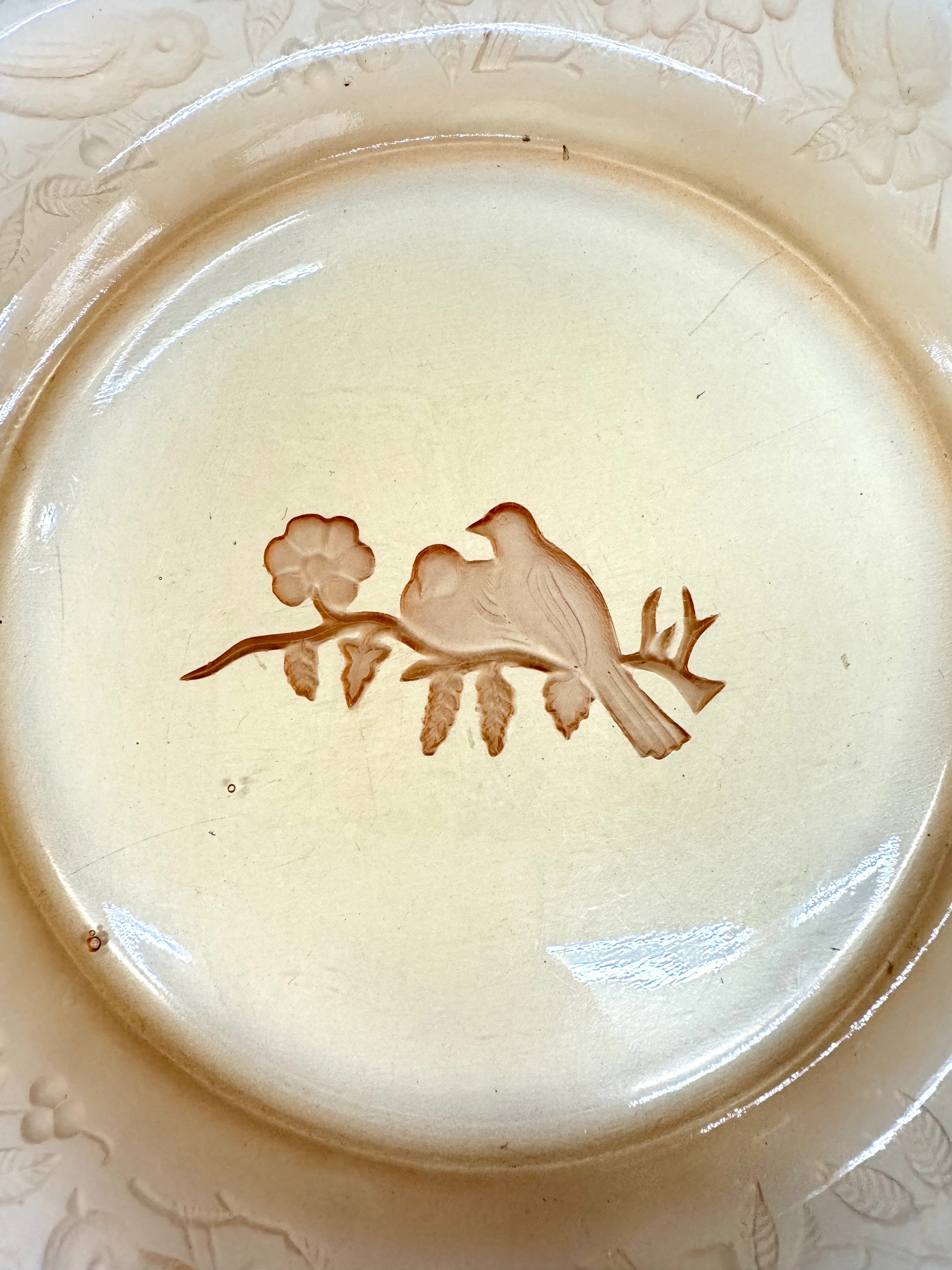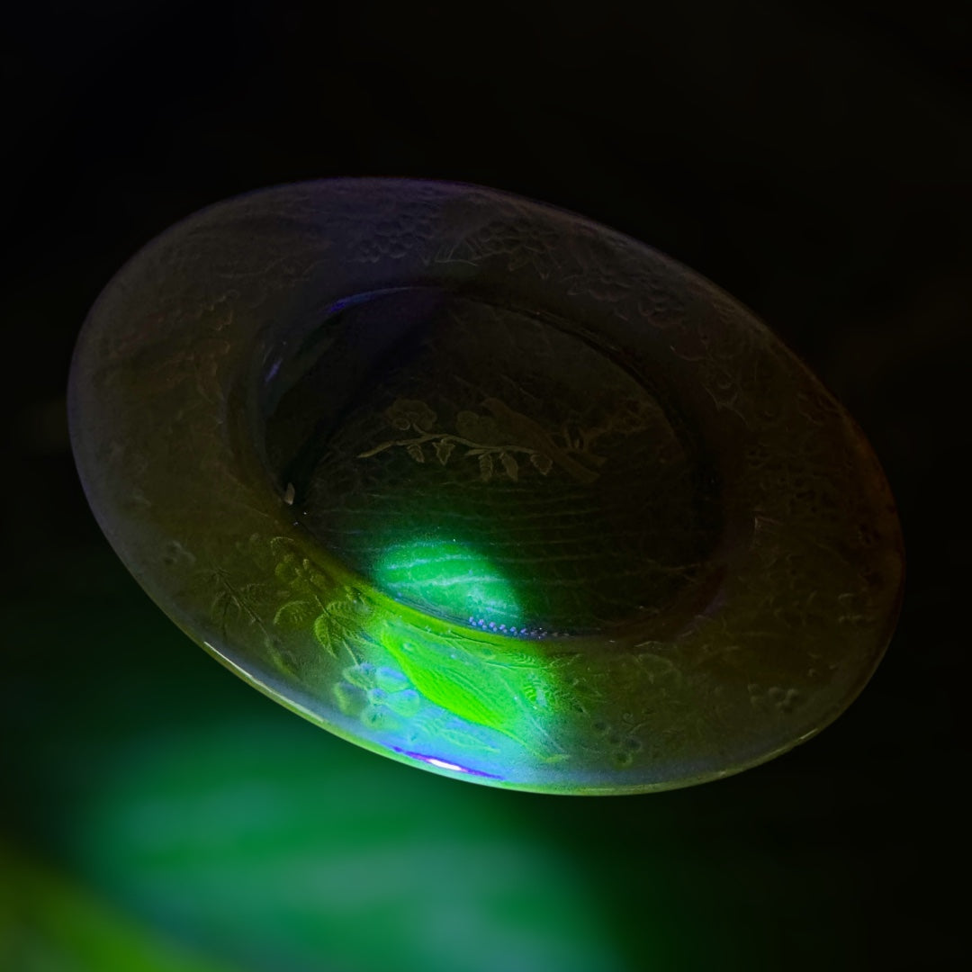 vtg Amber glass,Uranium glass plate,relief birds