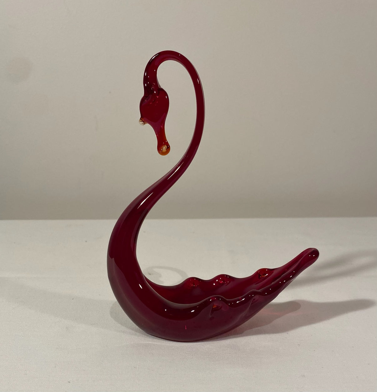 Introducing the Whitefriars Ruby Red Swan Dish, a stunning addition to any home. With its vibrant ruby red color, this dish is perfect for adding a pop of color to any space. Handcrafted by Whitefriars, it boasts high quality and timeless elegance.